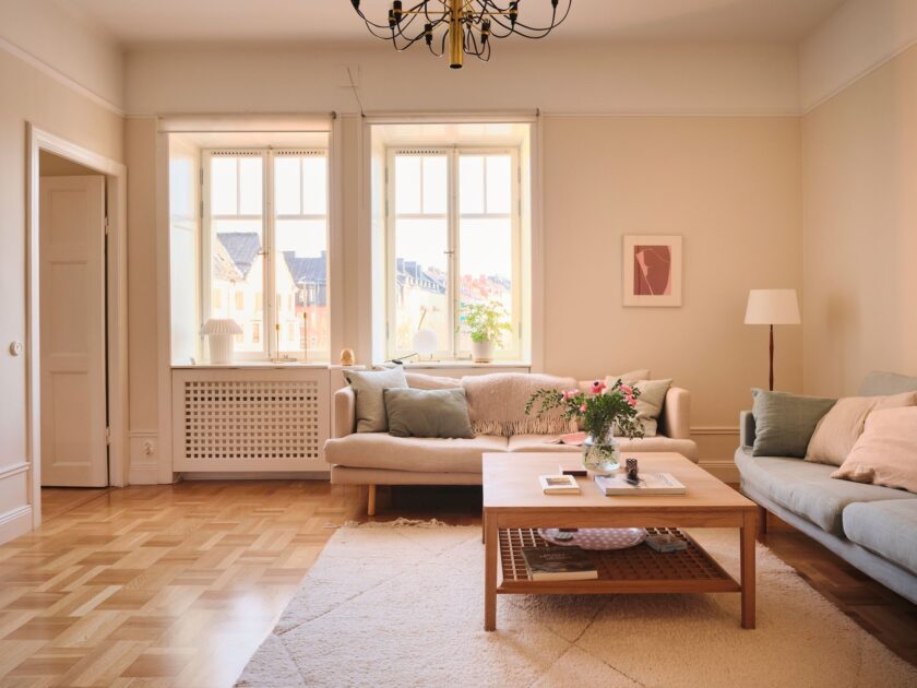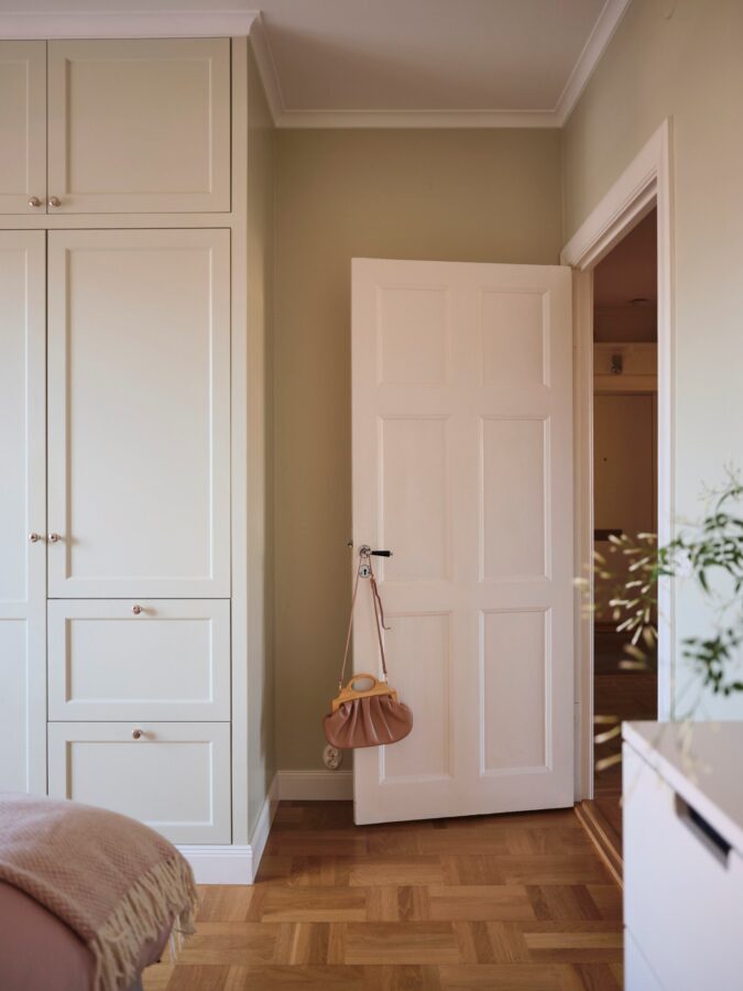 Kennst du diese Wohnungen, in denen man sofort bleiben will? Genau so fühlt sich dieser Altbau auf Södermalm an. Mit diesem feinen Gespür für Details, wie kleine Wanddeko-Elemente, fließend helle Vorhänge, die Heizungen verschwinden galant hinter Paneelen, Pastellrosa in allen Räumen… Alles wirkt so ruhig und entspannt – unter drei Meter hohen Decken.